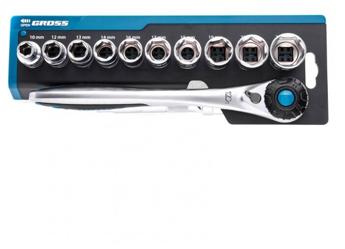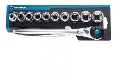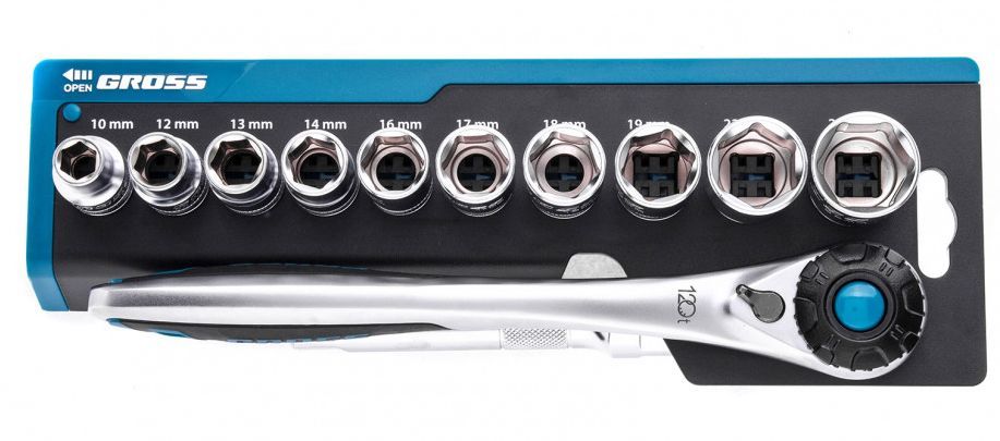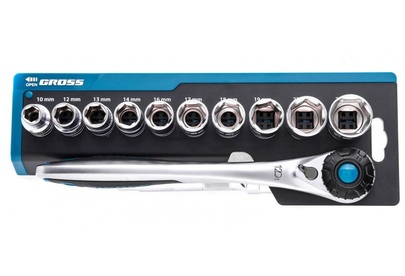 GROSS Набор торцевых головок, трещотка 120 зубьев, 12 предметов, 1/2", CrV 14138