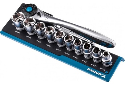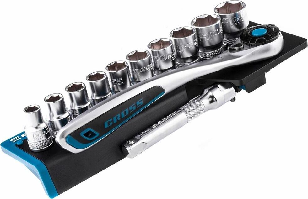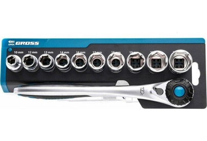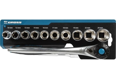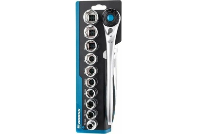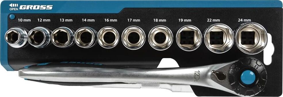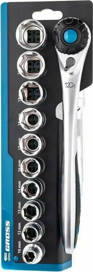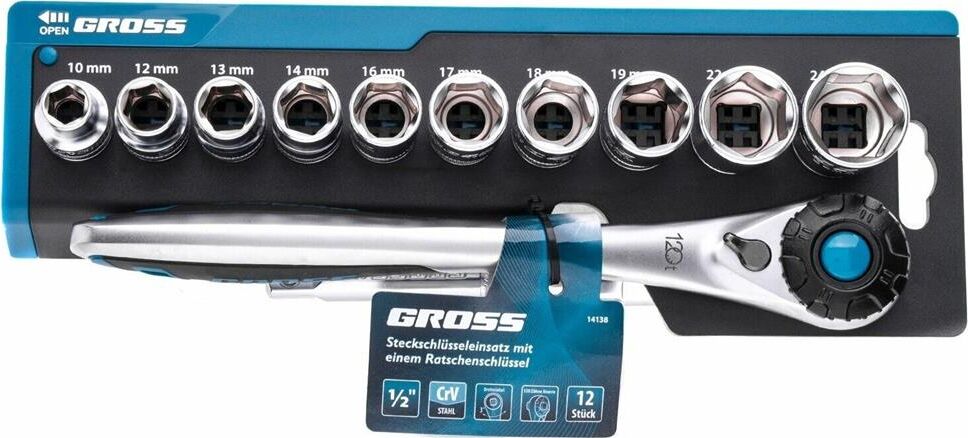 GROSS Набор торцевых головок, трещотка 120 зубьев, 12 предметов, 1/2", CrV 14138