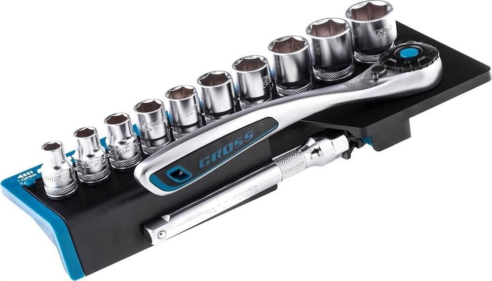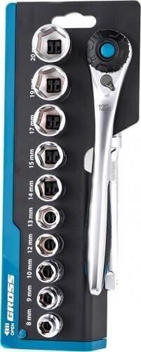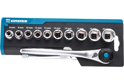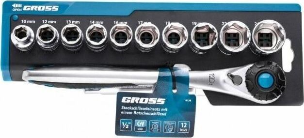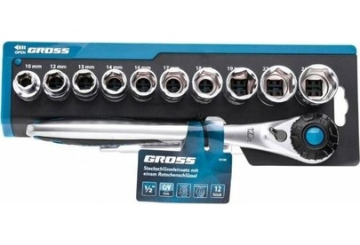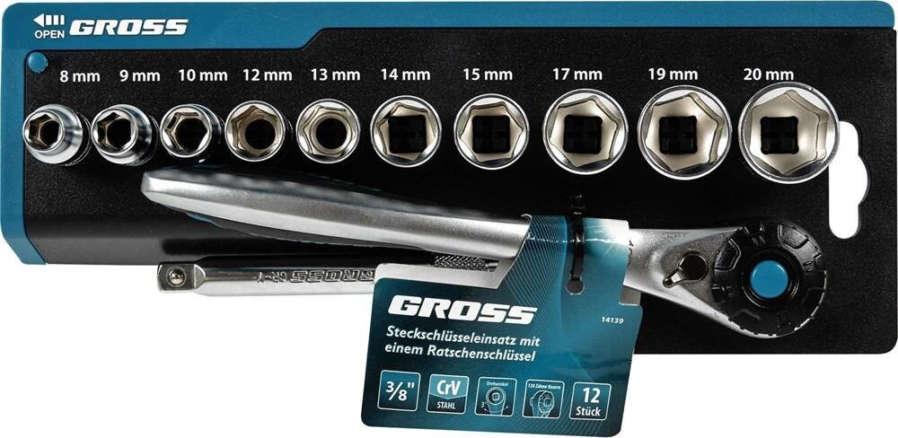 GROSS Набор торцевых головок, трещотка 120 зубьев, 3/8", CrV, 12 предметов 14139