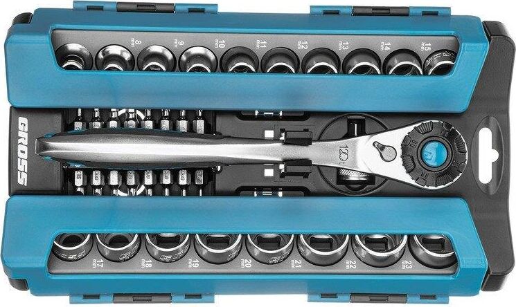 GROSS Набор торцевых головок, трещотка 120 зубьев, 36 предметов, 1/2" CrV 14144