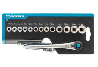GROSS Набор торцевых головок, трещотка 120 зубьев, 36 предметов, 1/4", CrV 14142