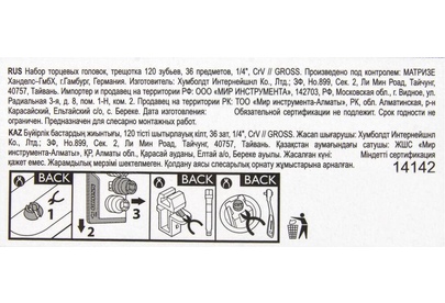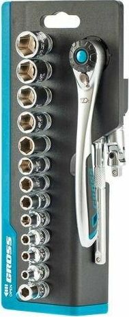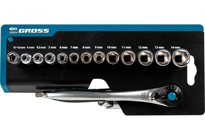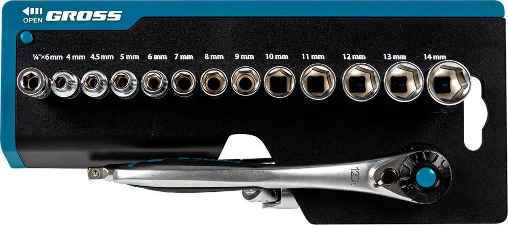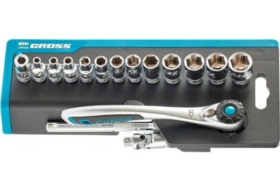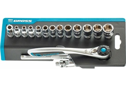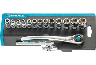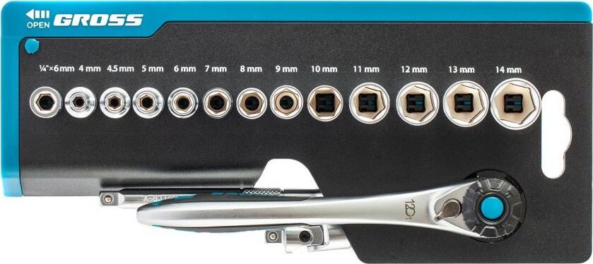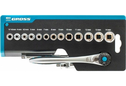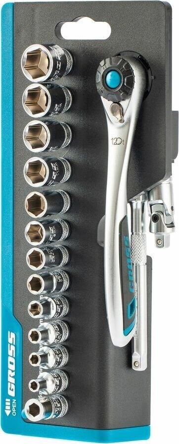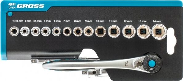 GROSS Набор торцевых головок, трещотка 120 зубьев, 36 предметов, 1/4", CrV 14142