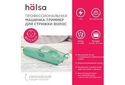 HALSA Машинка для стрижки волос детская, зеленая