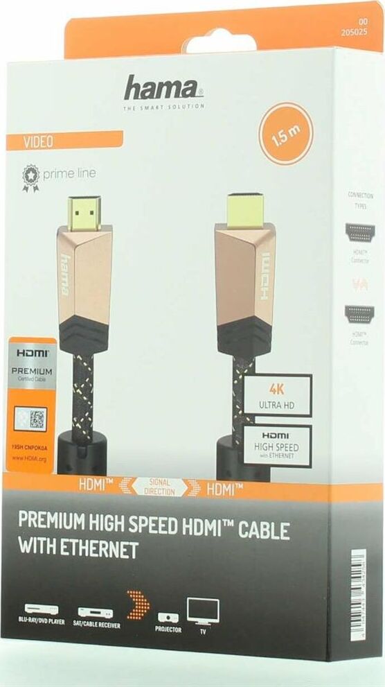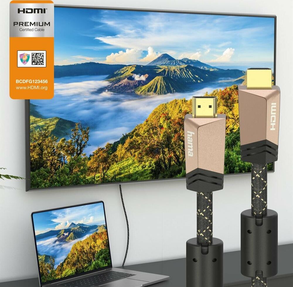 HAMA Кабель аудио-видео Premium, HDMI (m) - HDMI (m), 1.5м, GOLD, ф/фильтр, черный [00205025]