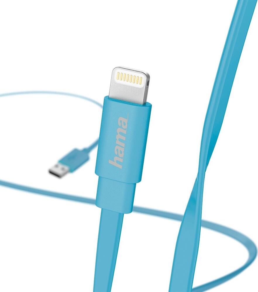 HAMA Кабель Flat 00173646 USB (m)-Lightning (m) 1.2м синий плоский