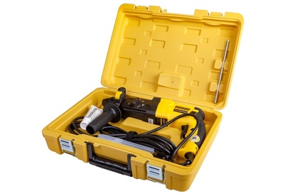Длина кабеля питания (м) 4, Регулировка оборотов двигателя, Тип крепления оснастки SDS+, Вид упаковки-пластиковый кейс, Максимальная мощность (Вт) 850, Обороты на холостом ходу (об/мин) 0-1100, Количество режимов работы 3, Энергия удара (Дж) 3,2, Реверс, Защитная муфта, Диаметр сверления (металл/дерево/бетон) (мм) 13/28/32, Вес 5.583 кг.