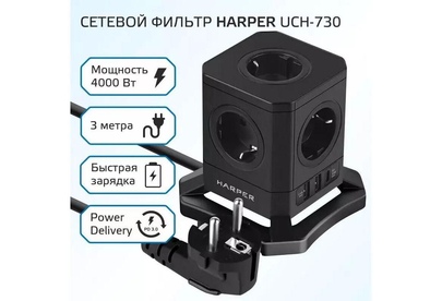 Сетевой фильтр Harper UCH-730- это идеальное сочетание функциональности и безопасности. Он обеспечит надежное подключение ваших устройств и защитит их от перепадов напряжения. Сетевой фильтр оснащен кабелем длиной 3 метра. Максимальная мощность нагрузки в 4000 Вт гарантирует, что вы сможете подключить все необходимые устройства без риска перегрева. Корпус выполнен из огнеупорного пластика, который выдерживает температуры до 850 °С, что обеспечивает дополнительную безопасность. Кроме того, устройство оснащено двумя USB портами и одним портом Type-C с поддержкой Power Delivery 3.0. Это позволяет быстро и удобно заряжать ваши гаджеты, не занимая при этом дополнительные розетки. Сетевой фильтр Harper UCH-730- это идеальное сочетание функциональности и безопасности. Обеспечьте надежное подключение ваших устройств и защитите их от перепадов напряжения.