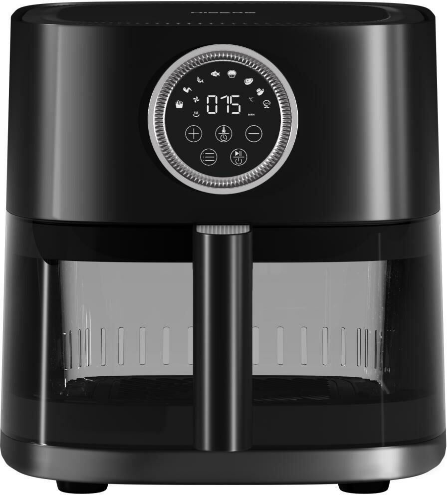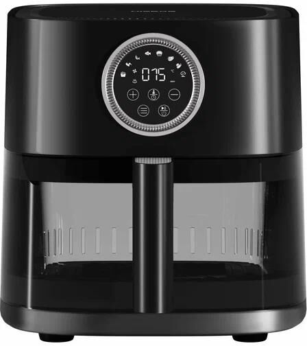 Аэрогриль с AC мотором, Объем: 4 л, Управление: сенсорное, Цветной дисплей, 8 автоматических программ, Специальная программа «МУЛЬТИПОВАР», Прозрачная стеклянная съемная чаша с обзором 360 градусов, Антипригарное покрытие чаши, Мощность 1400 Вт. Цвет- Ч