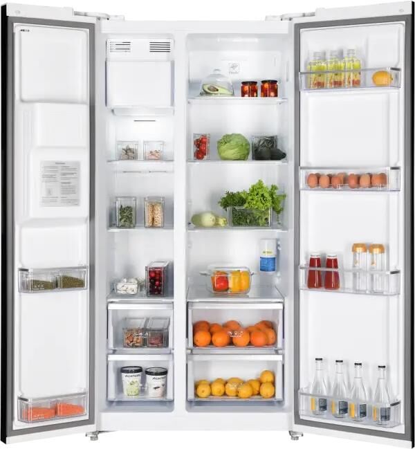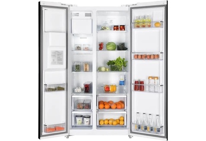 Холодильник Side-by-side с Автоматическим ледогенератором, с прямым подключением к воде: кубики льда/колотый лед/вода; ШхГхВ: 911х706х1780 мм; V=618/541 л (372л/169л); Класс A+; INVERTER; NoFrost; Угольный фильтр для воды, винная полка, Система Multi Air
