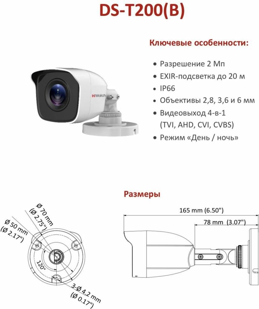 HIWATCH DS-T200(B) (2.8 mm) Камера видеонаблюдения 2.8-2.8мм HD TVI цветная корп.:белый