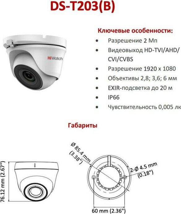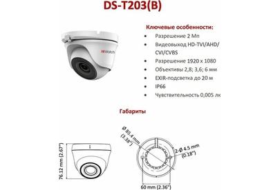 HiWatch DS-T203(B) 2.8-2.8мм Камера видеонаблюдения HD-CVI HD-TVI цветная корп.:белый