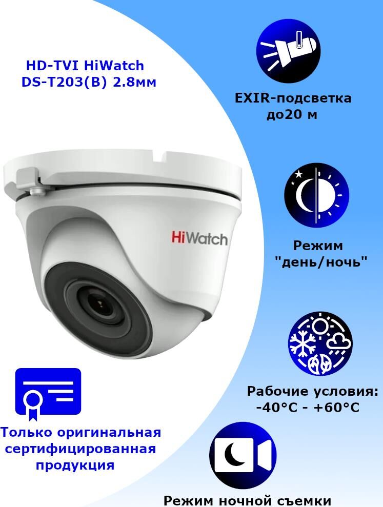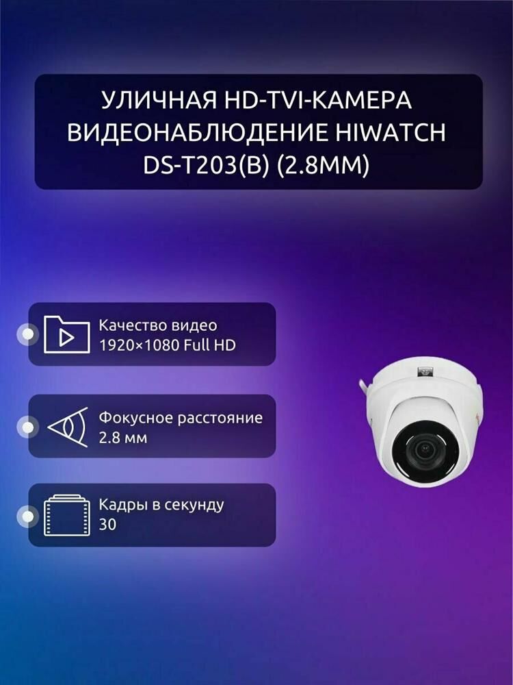 [Видеонаблюдение] HiWatch DS-T203(B) 2.8-2.8мм Камера видеонаблюдения HD-CVI HD-TVI цветная корп.:белый