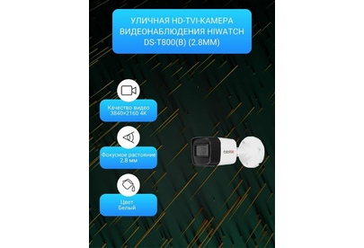 Камера видеонаблюдения HiWatch DS-T800(B) (2.8 мм) Матрица 8.29 Мп CMOS Стандарт передачи сигнала PAL/NTSC Разрешение 3840 ? 2160 Скорость передачи кадров TVI: 8 Мп @12.5 к/с, 8 Мп @15 к/с, 4 Мп @25 к/с, 4 Мп @30 к/с,2 Мп @25 к/с, 2 Мп @30 к/сAHD: 8 Мп @12.5 к/с, 8 Мп @15 к/сCVI: 8 Мп @12.5 к/с, 8 Мп @15 к/сCVBS: 960H PAL/NTSC Чувствительность 0.01 л/к @(F1.2, AGC вкл.), 0 лк с EXIR-подсветкой Скорость электронного затвора PAL: от 1/12.5 до 1/50,000 сNTSC: от 1/15