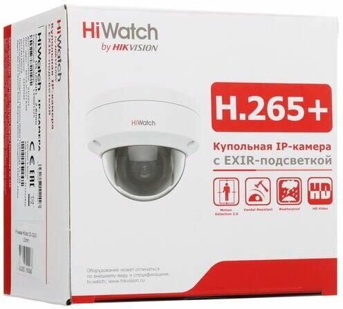 Цвет изображения: цветная. Тип матрицы: Progressive Scan CMOS. Разрешение камеры: 2. Исполнение: уличная. Описание протоколов: HIK Cloud P2P. Форматы сжатия видео: H.265/H.264/MJPEG. Дистанция ночной съемки: 30. Особенности: поддерживаемые протоколы: TCP/IP, ICMP, HTTP, FTP, DHCP, DNS, RTP, RTSP, RTCP, NTP, SMTP, IGMP, UDP, QoS, HIK Cloud P2P. Вес товара: 400. Рабочая температура: от -40 до +60. Рабочая влажность: до 95. Степень защиты: IP67. Тип конструкции камеры: купольная. Напряжение питания: DC 12 В/POE. Потребляемая мощность: 5. Размер матрицы: 1/2.7". Цифровое шумоподавление: 3D DNR. Угол обзора, мин: 62. Угол обзора, макс: 135.5. Тип объектива: фиксированное. Габариты упаковки (ед) ДхШхВ: 0.141x0.14x0.11. Вес упаковки (ед): 0.75. Тип камеры: IP. Дальность ИК-подсветки: 30. Количество осей вращения: 2 (поворот и наклон). Максимальный градус наклона: 75. Максимальный градус поворота: 355. Минимальная степень освещенности (цвет.): 0.01. Гарантия: 12 мес.. Фокусное расстояние: 2.8 мм. Разрешение: 1920 х 1