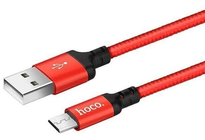 HOCO X14/ USB кабель Micro/ 2m/ 1.7A/ Нейлон/ Red&Black