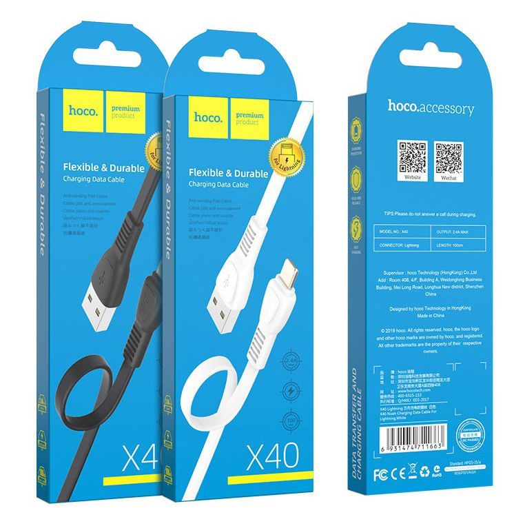 HOCO X40 "Noah" USB-8 Pin 2.4A 1M белый