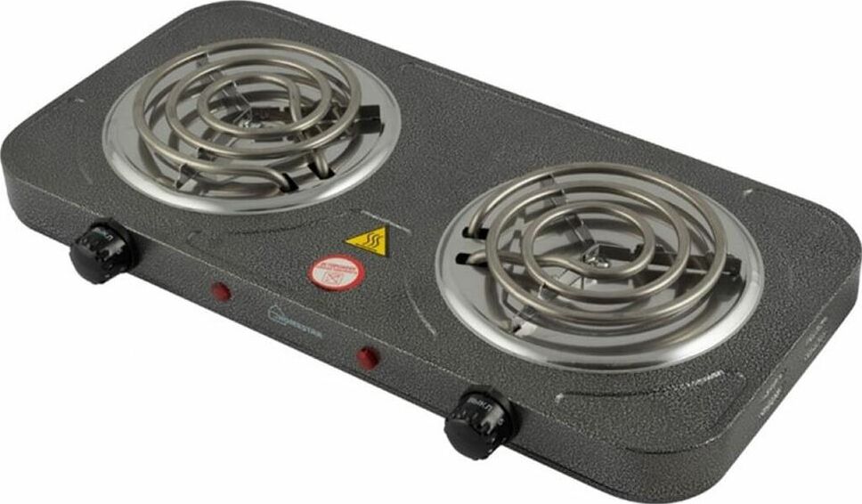 Мощность: 1000 Вт + 1000Вт Размер конфорки: 140 мм+140 мм Материал конфорки: ТЭН Световой индикатор работы Защита от перегрева Состав: металл, пластик, кабель