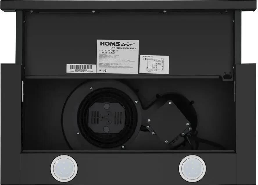 HOMSAIR Встраиваемая вытяжка Flat 60, управление кулисные переключатели, черный [flat 60 black]