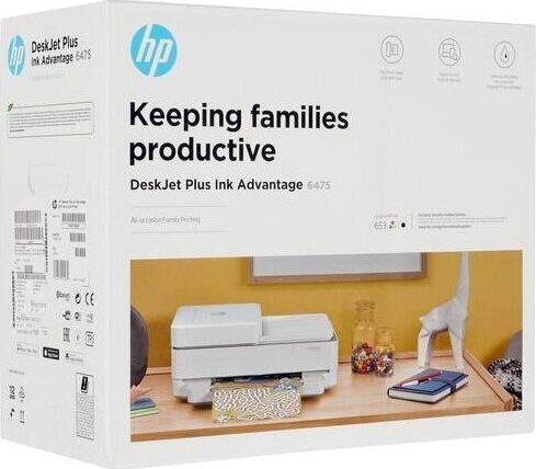 МФУ HP DeskJet Plus Ink Advantage 6475, HP 653, стартовый картридж, черный, HP 653, стартовый картридж, трехцветный, листовка с нормативными требованиями, руководство по установке, справочное руководство, кабель питания