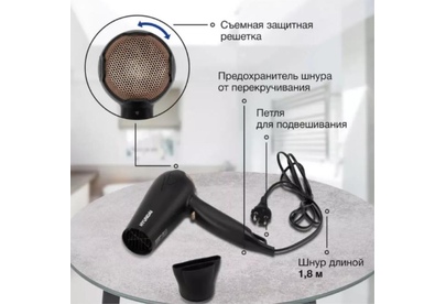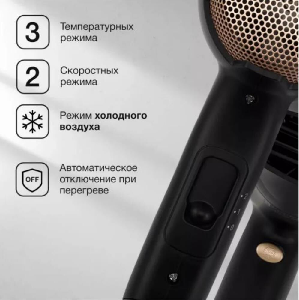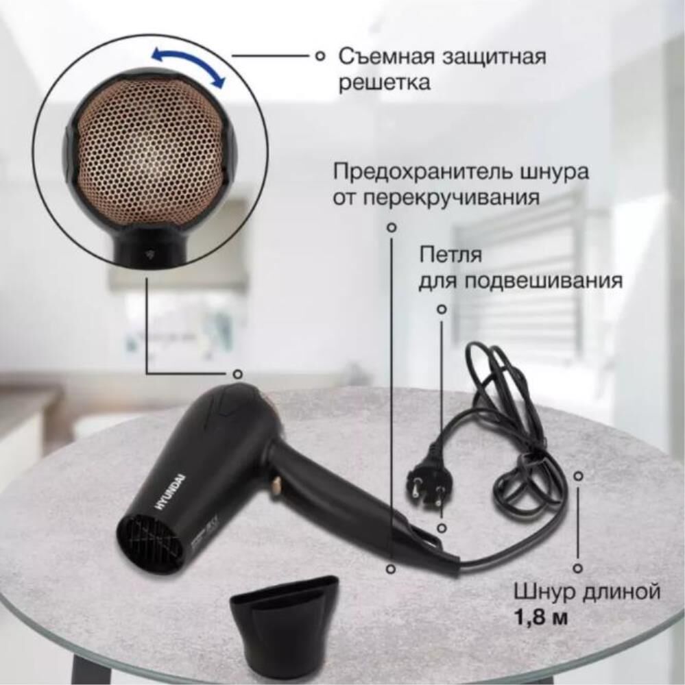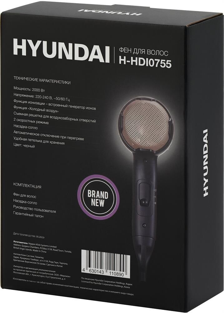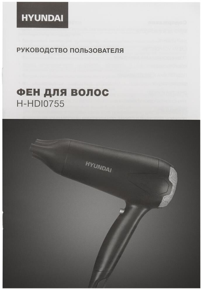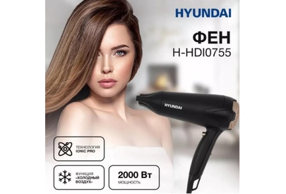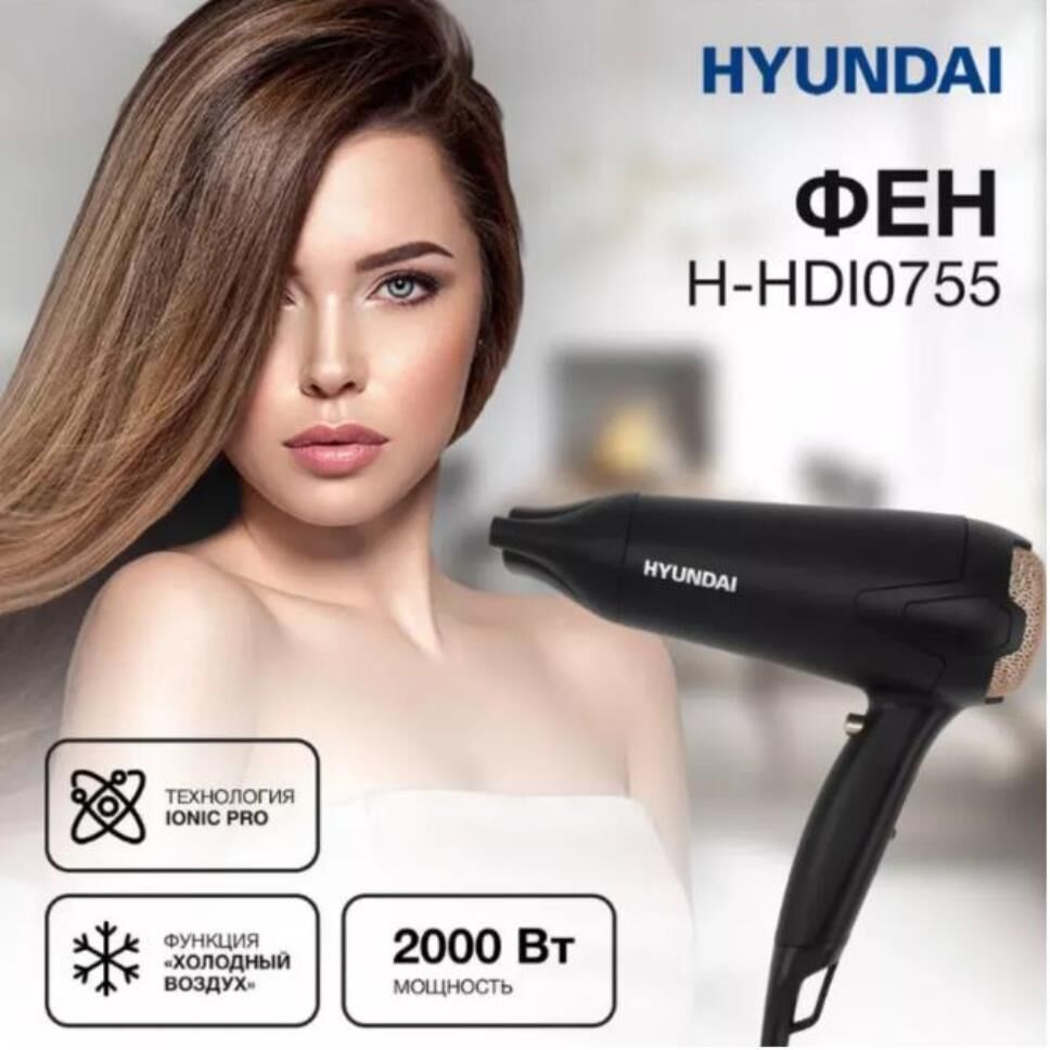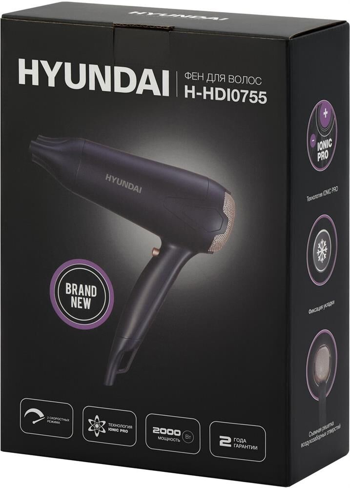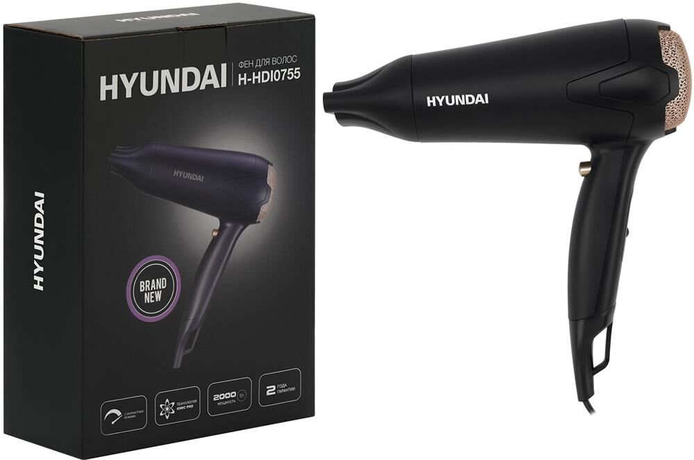 HYUNDAI Фен H-HDI0755, 2000Вт, черный матовый