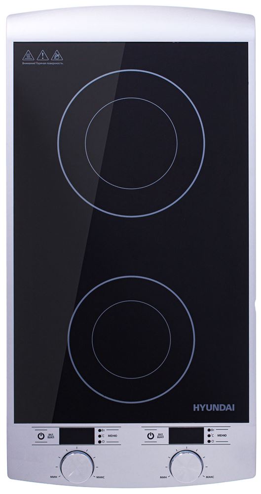 Двухкомфорочная индукционная плита; Мощность 2900 Вт; Два 4-рязрядных цифровых светодиодных дисплея; 10 уровней мощности; Таймер до 3 часов; Автоматическое отключение; Защита от перегрева; Сенсорный и механический тип управления; Цвет: серебряный/черный, размеры без упаковки 310x600x65 мм