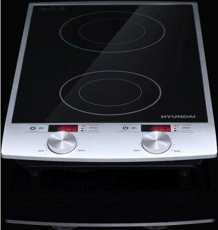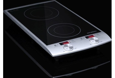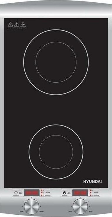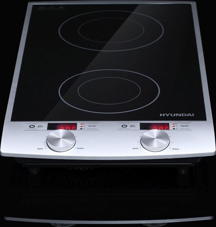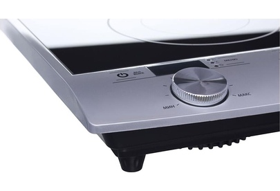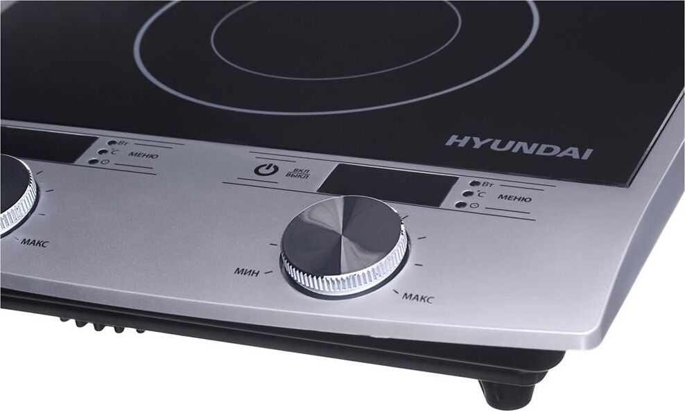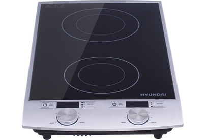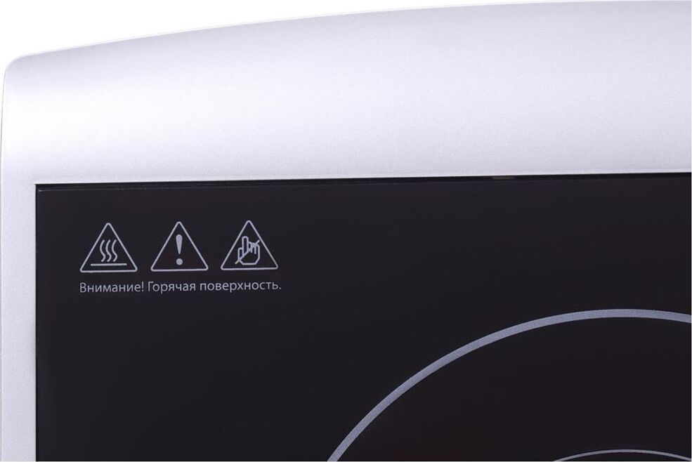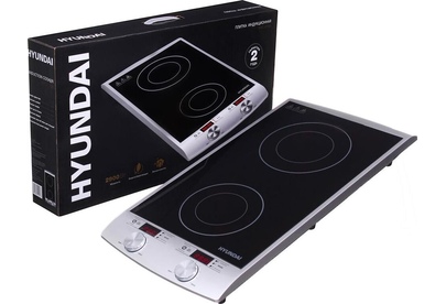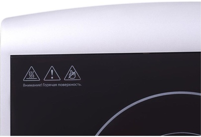 Двухкомфорочная индукционная плита; Мощность 2900 Вт; Два 4-рязрядных цифровых светодиодных дисплея; 10 уровней мощности; Таймер до 3 часов; Автоматическое отключение; Защита от перегрева; Сенсорный и механический тип управления; Цвет: серебряный/черный, размеры без упаковки 310x600x65 мм