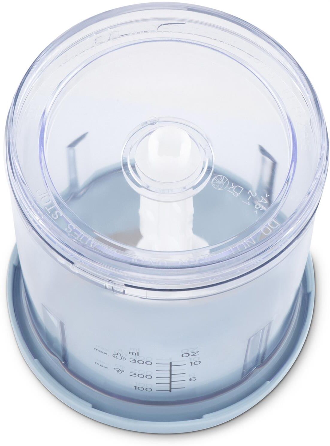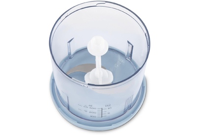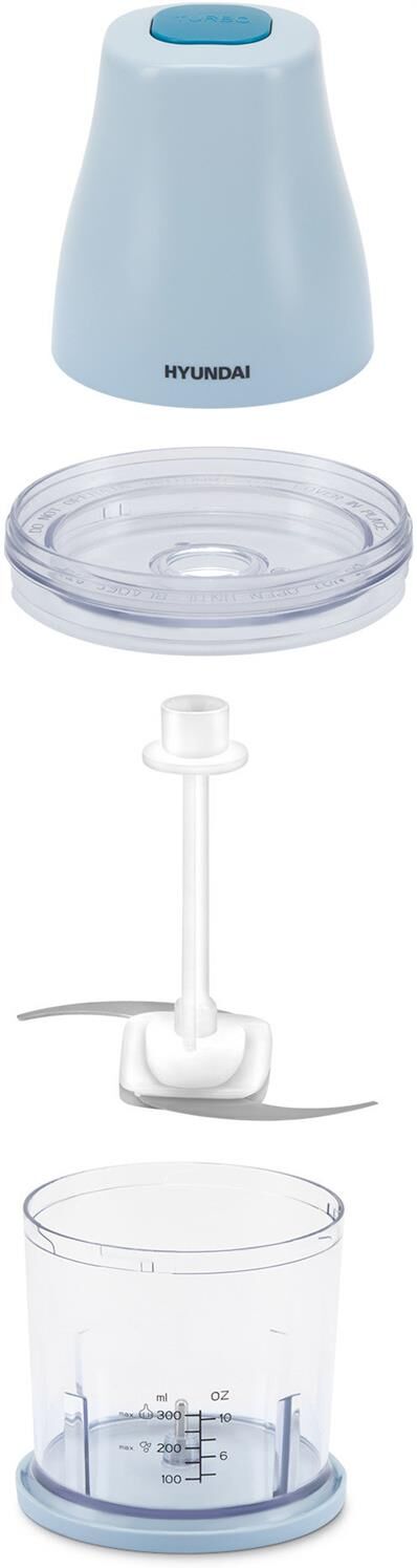 Мощность 350 Вт Емкость 0,8 л. Корпус – пластик +металл Чаша – пластик 1 скорость Двойной нож из нержавеющей стали Импульсный режим Насадка для чистки чеснока Прорезиненные ножки Количество вставок/дисков 2