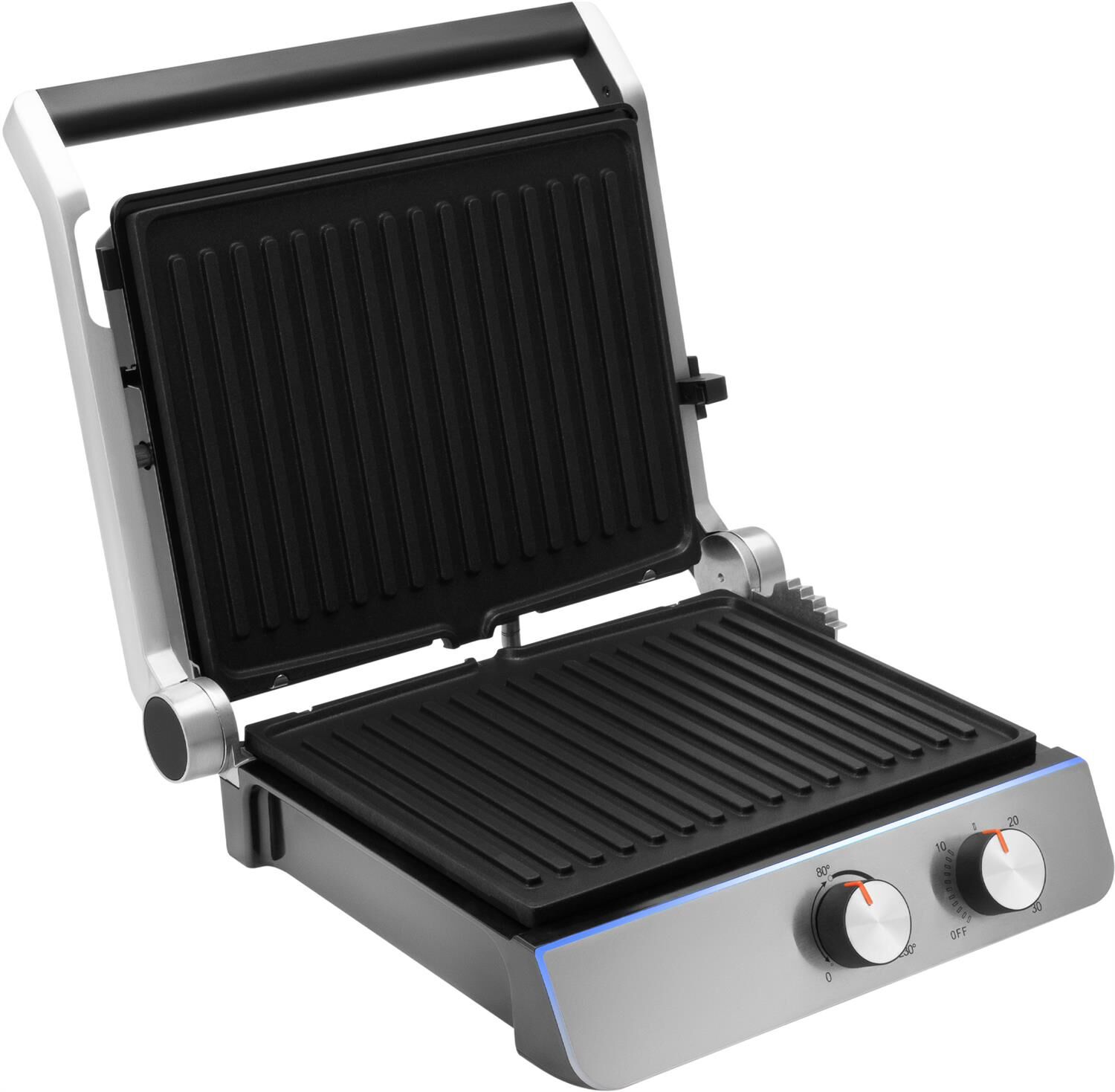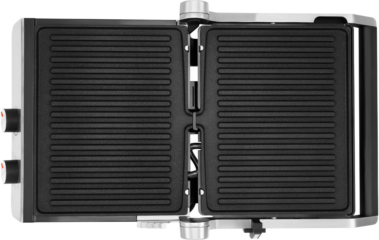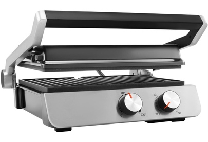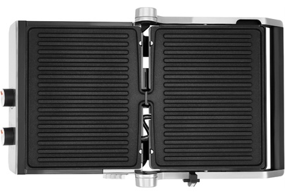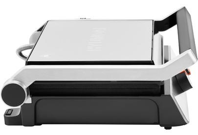 Тип управления механическое Мощность (макс) 2200 Вт Тип нагревательного элемента ТЭН Установка температуры приготовления Установка времени приготовления Антипригарное покрытие нагревательных частей Длина рабочей поверхности 23 см Ширина рабочей поверхности 29 см Съемные формы Цвет черный Материал корпуса нержавеющая сталь/пластик Длина электрокабеля 0.8 м Лоток для сбора жира Фиксация в закрытом состоянии Индикатор включения Индикатор нагрева Раскрытие на 180 градусов Верхняя крышка имеет «плавающий» фиксатор и адаптирует свое положение под любой продукт с максимальным касанием к панели нагрева Срок гарантии 24 мес.