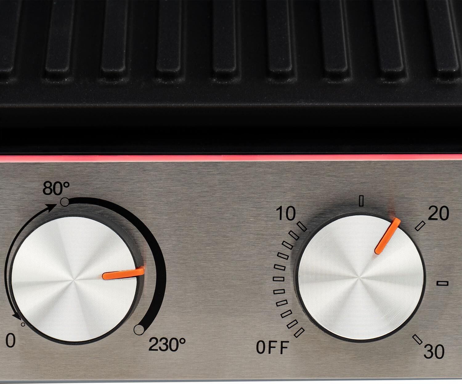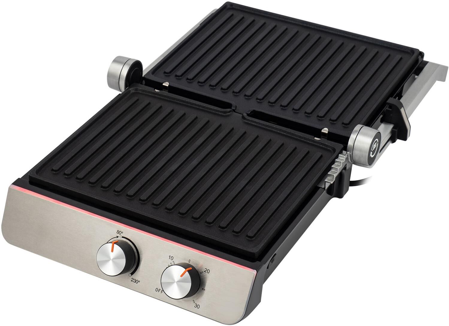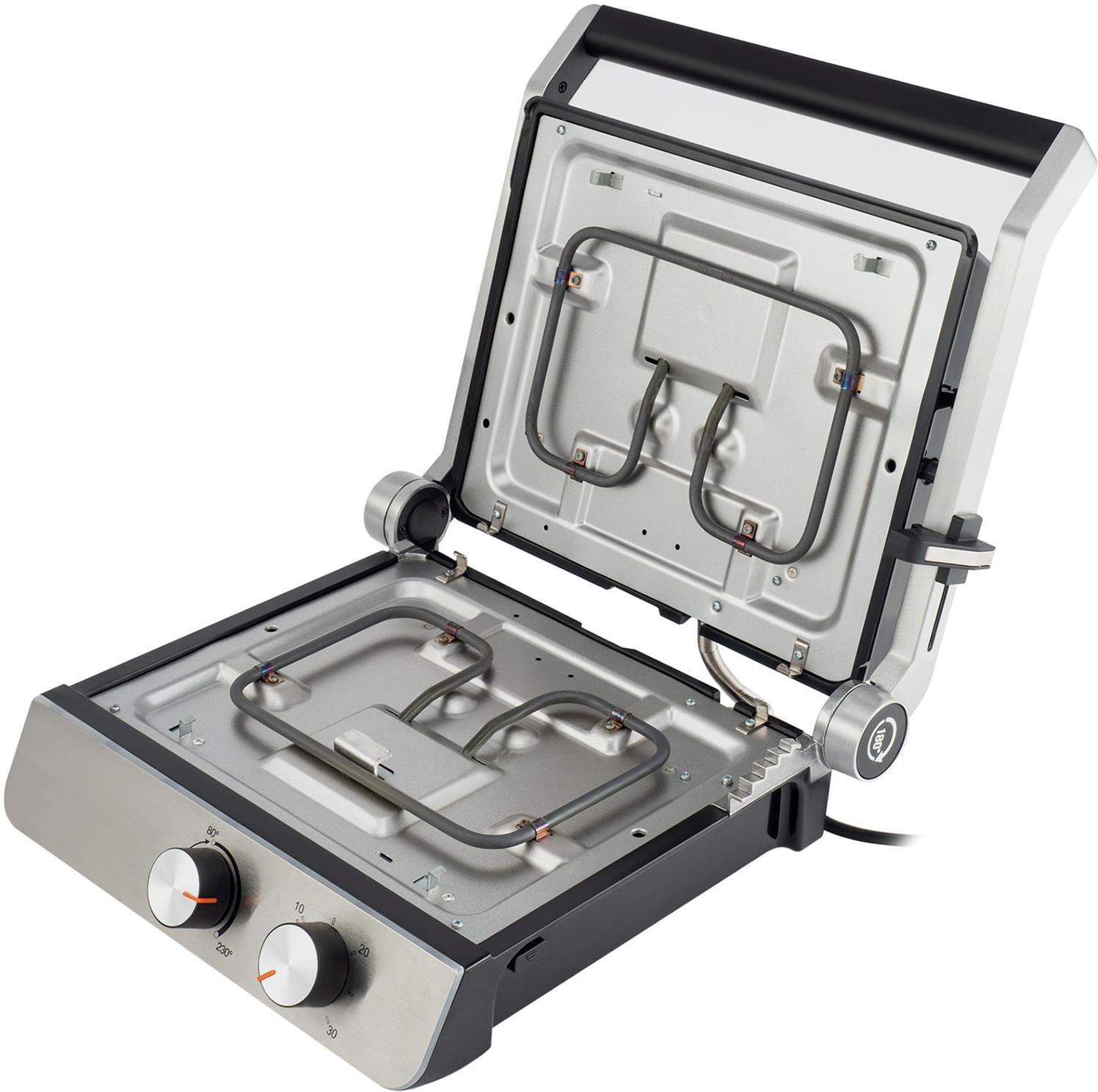 Тип управления механическое Мощность (макс) 2200 Вт Тип нагревательного элемента ТЭН Установка температуры приготовления Установка времени приготовления Антипригарное покрытие нагревательных частей Длина рабочей поверхности 23 см Ширина рабочей поверхности 29 см Съемные формы Цвет черный Материал корпуса нержавеющая сталь/пластик Длина электрокабеля 0.8 м Лоток для сбора жира Фиксация в закрытом состоянии Индикатор включения Индикатор нагрева Мойка рабочих поверхностей в посудомоечной машине Раскрытие на 180 градусов Верхняя крышка имеет «плавающий» фиксатор и адаптирует свое положение под любой продукт с максимальным касанием к панели нагрева. Срок гарантии 24 мес.