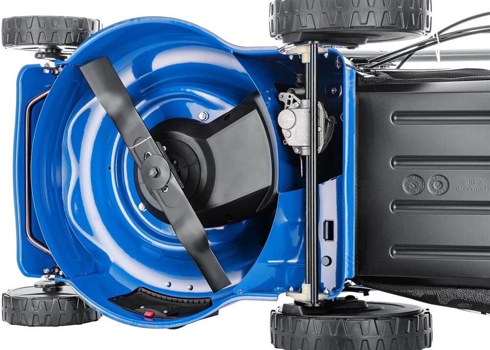 Самоходная газонокосилка L 4610S оборудована приводом на задние колеса. Газонокосилка едет сама, ее достаточно направлять. Эргономичные рукоятки управления имеют обтяжку из мягкой резины, снижает утомляемость и повышает удобство работы. Оригинальный бензиновый двигатель HYUNDAI 3,8л.с., гарантирует качество работы и долговечность. Благодаря ему газонокосилка способна обработать большие площадки газона без особого труда. Высота кошения травы централизованная, что является максимально удобным. Всего предусмотрено 6 вариантов регулировки в диапазоне можно от 25 до 75 мм.