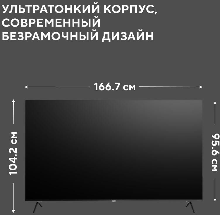 HYUNDAI Телевизор LED 75" H-LED75BU7011 Google TV Frameless Metal черный 4K Ultra HD 60Hz MEMC DVB-T