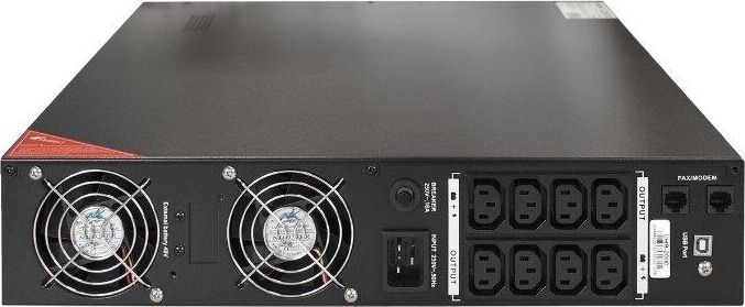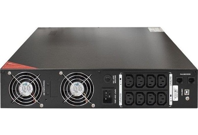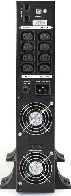 Полная мощность, ВА: 3000, Мощность активная, ВТ: 2400, Номинальное напряжение, В: 230, Диапазон напряжений, В: 145-275, Частота на входе, Гц: 45-65, Напряжение, В: 220±8%, Частота на выходе, Гц: 50±0.5, Форма выходного напряжения: Чистая синусоида, Время переключения на работу от батарей, мс: 2-6, но не более 10, Тип индикации: LCD, Входной разъем: IEC C20, Выходные разъемы: 8xIEC C13, USB-порт.