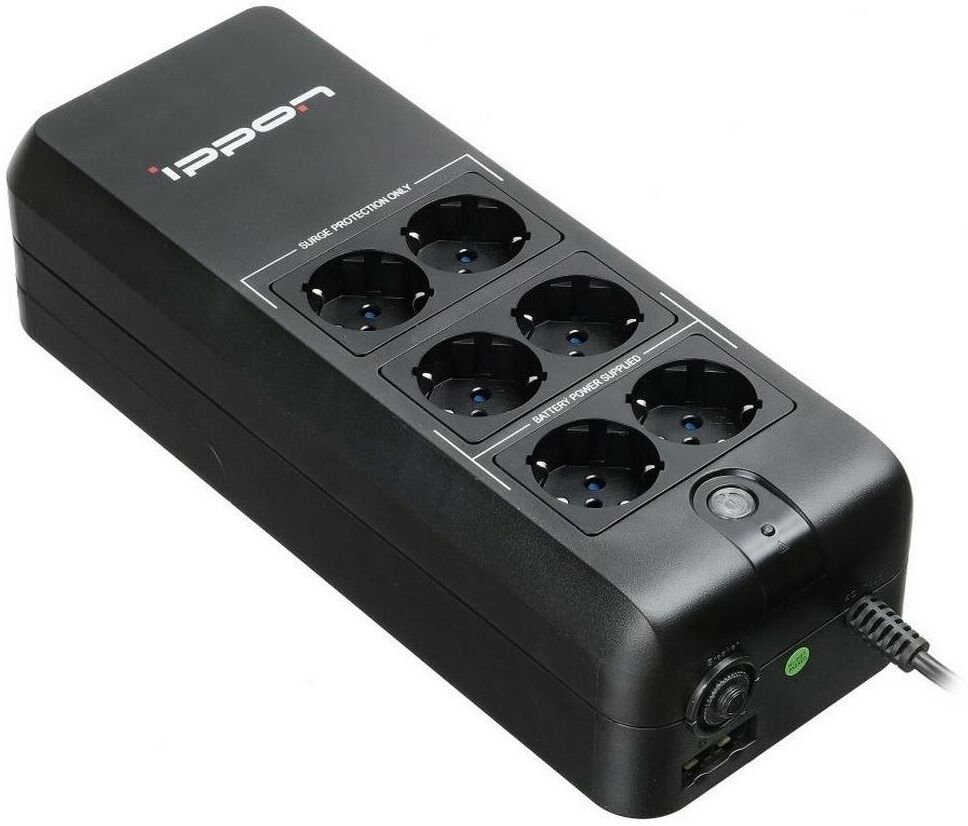 **IPPON Back Verso 600** — это источник бесперебойного питания (ИБП), который обеспечивает защиту подключённого оборудования от скачков напряжения и кратковременных отключений электроэнергии. **Основные характеристики:** * мощность: 300 Вт; * выходная мощность: 600 ВА; * количество выходных разъемов питания: 4; * тип выходных разъемов питания: IEC 320 C13 (компьютерный); * время зарядки: 10 часов. IPPON Back Verso 600 Standby 300W/600VA может использоваться для защиты компьютеров, серверов, сетевого оборудования и других устройств, чувствительных к перепадам напряжения. Этот ИБП имеет компактный размер и небольшой вес, что делает его удобным для использования в небольших офисах или домашних условиях. Он также отличается низким уровнем шума во время работы. Для получения более подробной информации о характеристиках, преимуществах и особенностях эксплуатации этого устройства рекомендуется обратиться к инструкции по эксплуатации или проконсультироваться с продавцом. Важно помнить, что выбор источника бесперебойн