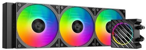 Тип компонента: помпа. Количество вентиляторов: 3. Размер вентилятора: 120. Материал радиатора: алюминий. Тип поставки: Ret. Цвет подсветки: многоцветная. Особенности: RGB FAN and PUMP Разъём подключения подсветки - 3 pin. Макс, рассеиваемая мощность (TDP, Вт): 350. Срок службы помпы: 50000. Материал основания прилегающего к охлаждаемому устройству: медь. Питание вентилятора от материнской платы: 4-pin. Потребляемое напряжение вентилятора: 12. Потребляемая мощность помпы: 3. Термопаста в комплекте: есть. Габариты упаковки (ед) ДхШхВ: 0.47x0.15x0.225. Вес упаковки (ед): 3.77. Тип подсветки: ARGB. Цвет: черный. Длина радиатора: 396. Толщина радиатора: 27. Ширина радиатора: 120. Гарантия: 24 мес.. Скорость вращения вентилятора: 2150 об/мин. Скорость вращения помпы: 2900 об/мин. Тип подшипника: Hydraulic Bearing. Тепловые трубки: без тепловых трубок. Потребляемое напряжение помпы: 12 В. Воздушный поток вентилятора: 85 cfm. Уровень шума вентилятора: 32.5 дБ. Тип крепления: на винтах, скоба. Назначение кулера для б