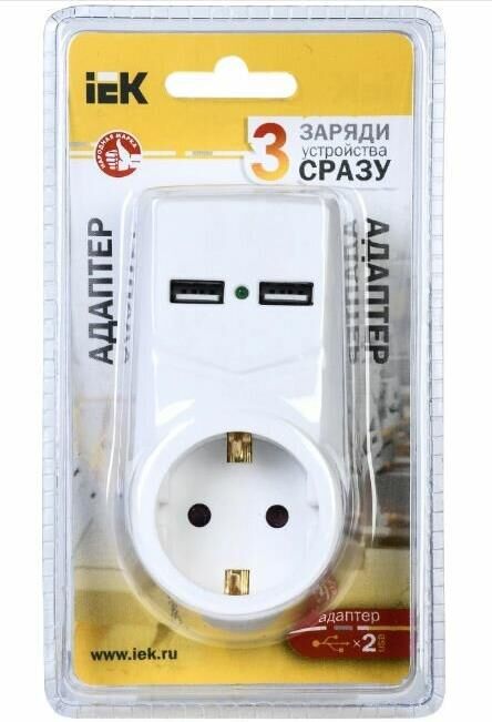 Входная вилка, тип: EURO. Номинальный ток: 16. Номинальное напряжение питающей сети: 250. Частота сети: 50. Защита от перегрева: есть. Количество выходных розеток: 1. Портов USB для зарядки: 2. Максимальный ток USB порта: 2.1. Габариты упаковки (ед) ДхШхВ: 0.175x0.097x0.07. Вес упаковки (ед): 0.1. Гарантия: 12 мес.. Цвет: белый. Портов USB для зарядки: 2. Количество выходных розеток: 1. Входная вилка: EURO