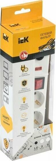 IEK Сетевой фильтр СФ-03К, 1.5м, белый [wfp10-16-03-01-n]