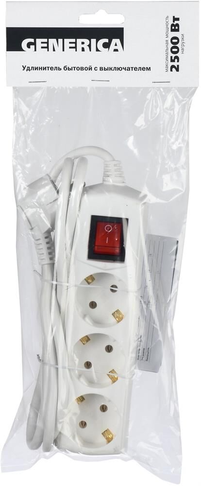 IEK Сетевой удлинитель У03В 1.5м (3 розетки) белый (пакет ПЭ)