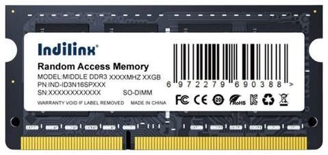 INDILINX Оперативная память IND-ID3N16SP08X DDR3 - 1x 8ГБ 1600МГц, для ноутбуков (SO-DIMM), Ret