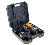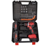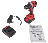 Аккумуляторная дрель с функцией шуруповёрта предназначена для сверления отверстий в цветных и чёрных металлах, пластмассах, дереве и других строительных материалах (при установке сверла). Кроме того инструмент можно использовать для завинчивания и отвинчивания винтов, шурупов, саморезов при монтажных и строительных работах, как в производственных, так и бытовых условиях (при установке соответствующих бит). Тип аккумулятора-Li-Ion, в комплекте 2 аккумулятора, количество скоростей работы -2. Материал корпуса-пластик. Тип двигателя инструмента-щеточный. Тип патрона-быстрозажимной. Максимальный крутящий момент (Н/м)-30.