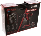 Дрель-шуруповерт аккумуляторная безударная Edon AD-14С, предназначена для закручивания, отворачивания винтов и шурупов, сверления отверстий в различных конструкционных материалах (в том числе металле, дереве, пластмассе и т.д.). Максимальный крутящий момент - 25 Н*м.; Емкость аккумулятора - 2 А*ч.; Напряжение аккумулятора - 14 В.; Макс. число оборотов холостого хода: 0 - 450 об/мин.; 0 - 1450 об/мин.; Диаметр патрона, макс. - 10 мм.