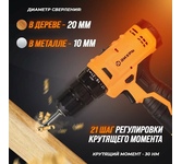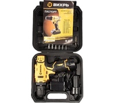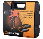 12В, Аккумулятор Li-ion,2 Ач, Максимальный крутящий момент, 30 Нм, 0-350; 0-1350; 35000 уд/мин; Число ступеней регулировки момента 18+1; Максимальный диаметр сверления в древесине 21 мм; Максимальный диаметр сверления в стали 10 мм; Одномуфтовый пластиковый патрон с блокировкой шпинделя; подсветка рабочей зоны; быстрый заряд (60 мин); Синхронный двигатель; ударный; в комплекте 2 аккумулятора