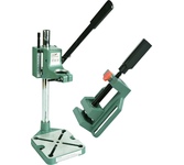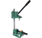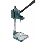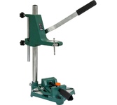 Стойка 96203 Калибр 00000000571 используется совместно с дрелями. Она надежно фиксируется на поверхности стола при помощи болтов. С помощью стойки производят вертикальное закрепление инструмента. Можно осуществлять сверление без удерживания дрели в руках. В комплекте предусмотрены тиски, с помощью которых фиксируют различные заготовки. Дополнительные характеристики: Высота - 400 мм; Материал - силумин; Размер рабочего стола - 150х150 мм; Диаметр зажимного отверстия - 43 мм; Глубина сверление - 60 мм. Параметры упакованного товара Единица товара: Штука Вес, кг: 2,52 Длина, мм: 414 Ширина, мм: 180 Высота, мм: 111