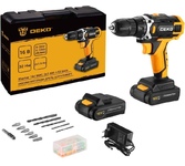 Аккумуляторная дрель-шуруповерт DEKO Banger 20V ONE + BMC, 2x1.5Ah + 63 tools используется при строительных, слесарно-монтажных работах. Помогает быстро высверливать отверстия нужного диаметра как на деревянной, так и металлической поверхности, быстро вкручивать или извлекать крепеж. Технические характеристики: Размер зажимаемой оснастки: 0,8-10 мм Макс. диаметр сверления (дерево/металл): 28/10 мм Обороты, 1-я/2-я скорость: 0-350/0-1350 об/мин Число ступеней крутящего момента: 18+1 Комплектация: 1 шт дрель-шуруповерт 2 шт АКБ 1 шт зарядное ус-во 6 шт биты 6 шт сверла 1 шт магнитный держатель 50 шт набор крепежа 1 шт руководство по эксплуатации 1 шт кейс