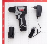 Тип аккумуляторный. Тип двигателя щеточный. Наличие реверса да. Наличие подсветки да. Тормоз двигателя нет. Тип патрона быстрозажимной. Крепление патрона 3/8. Блокировка шпинделя нет. Размер зажимаемой оснастки 1-10 мм. Max крутящий момент 28 Нм. Жестк. вращ. момент 28 Нм. Мягк.вращ. момент 28 Нм. Число скоростей 2. Частота вращения шпинделя 0-350/0-1350 об/мин. Max частота вращения шпинделя 1350 об/мин. Число ступеней крутящего момента 18+1. Max диаметр шурупа 6 мм. Max диаметр сверления (металл) 10 мм. Мах диаметр сверления (дерево) 16 мм. Тип аккумулятора Li-Ion. Напряжение аккумулятора 12 В. Емкость аккумулятора 1.5 А*ч. Устройство аккумулятора обойма. Время заряда 2 ч. Количество аккумуляторов в комплекте 2. Зарядное устройство в комплекте есть. Габариты без упаковки 295х230х90 мм.