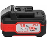 Литий-ионная аккумуляторная батареи слайдерного типа АПИ 18/36 В и емкостью 4,0/2,0 А•ч. Работает на 18 В, так и 36 В, ячейки типа 18650