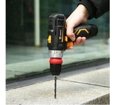 Дрель-шуруповерт аккумуляторная бесщеточная ударная Edon AD-21СBL, предназначена для закручивания, отворачивания винтов и шурупов, сверления отверстий в различных конструкционных материалах, имеет функцию удара и соответственно возможность сверления в бетоне, кирпиче, пено-блоке и других строительных материалах. Напряжение питания - 21 В.; Частота вращения - 0-450 / 0-1450 об/мин.; Емкость аккумулятора - 2 Ач.; Крутящий момент - 33 Нм.; Диаметр отверстия в патроне под оснастку - 1.0-10.0 мм.; Вес инструмента - 1,2 кг.
