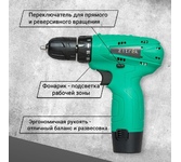 Max диаметр сверления (дерево), мм 25,00. Max диаметр сверления (металл), мм 10,00. Max крутящий момент , Нм 32,00. Блокировка шпинделя патрона Нет. Время зарядки АКБ, мин 90,00. Емкость аккумулятора, А*ч 1,50. Защита от перегрева АКБ Нет. Количество аккумуляторов в комплекте 2,00. Макс. обороты на 1ой скорости, об./мин 0-600. Наличие подсветки Да. Наличие реверса Да. Наличие удара Нет. Напряжение аккумулятора, В 12,00. Размер зажимаемой оснастки, мм 10. Тип аккумулятора Li-Ion. Тип двигателя щеточный. Тип патрона быстрозажимной. Тормоз двигателя Нет. Упаковка кейс. Число скоростей 1,00. Число ступеней крутящего момента 18+1.