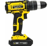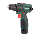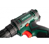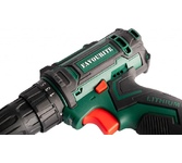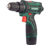Аккумуляторная дрель с функцией шуруповёрта предназначена для сверления отверстий в цветных и чёрных металлах, пластмассах, дереве и других строительных материалах (при установке сверла). Кроме того инструмент можно использовать для завинчивания и отвинчивания винтов, шурупов, саморезов при монтажных и строительных работах, как в производственных, так и бытовых условиях (при установке соответствующих бит). Тип аккумулятора-Li-Ion, в комплекте 2 аккумулятора, количество скоростей работы -2. Материал корпуса-пластик. Тип двигателя инструмента-щеточный. Тип патрона-быстрозажимной. Максимальный крутящий момент (Н/м)-30.