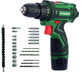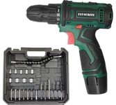 Тип инструмента: Дрель-шуруповерт. Крутящий момент: 30. Количество скоростей: двухскоростной. Число ступеней крутящего момента: 18+1. Тип основного патрона: быстрозажимной. Максимальный диаметр сверления (сталь): 10. Максимальный диаметр сверления (дерево): 20. Максимальный диаметр шурупов: 6. Тип электропитания: от аккумулятора. Емкость аккумулятора: 1.5. Напряжение аккумулятора: 12. Тип аккумулятора: Li-Ion. Время зарядки, около: 120. Запасной аккумулятор: в комплекте. Жесткий кейс в комплекте: есть. Вес товара: 1.93. Комплект поставки: Дрель-шуруповерт аккумуляторная (1 шт) Аккумуляторная батарея ( 2шт, одна подсоединена к шуруповерту) Зарядное устройство (1 шт) Двусторонняя бита (1 шт). Аккумулятор: в комплекте. Зарядное устройство: в комплекте. Количество аккумуляторов в комплекте: 2 аккумулятора. Габариты упаковки (ед) ДхШхВ: 0.28x0.08x0.245. Вес упаковки (ед): 2. Страна производства: Китай. Гарантия: 12 мес.. Число оборотов (для 2 скорости): 1500 об/мин. Диаметр основного патрона: 0.8 - 10 мм. Число об