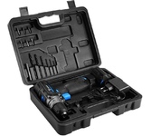 Напряжение АКБ: 12 В Макс. диаметр сверления (дерево/металл): 25/10 мм Размер зажимаемой оснастки: 0,8-10 мм Обороты 1-я/2-я скорости: 0-400/0-1500 об/мин Комплектация: 1 шт аккумуляторная дрель-шуруповерт 2 шт АКБ 1 шт зарядное устройство 6 шт биты 6 шт сверла 1 шт удлинитель для бит 1 шт руководство по эксплуатации 1 шт кейс
